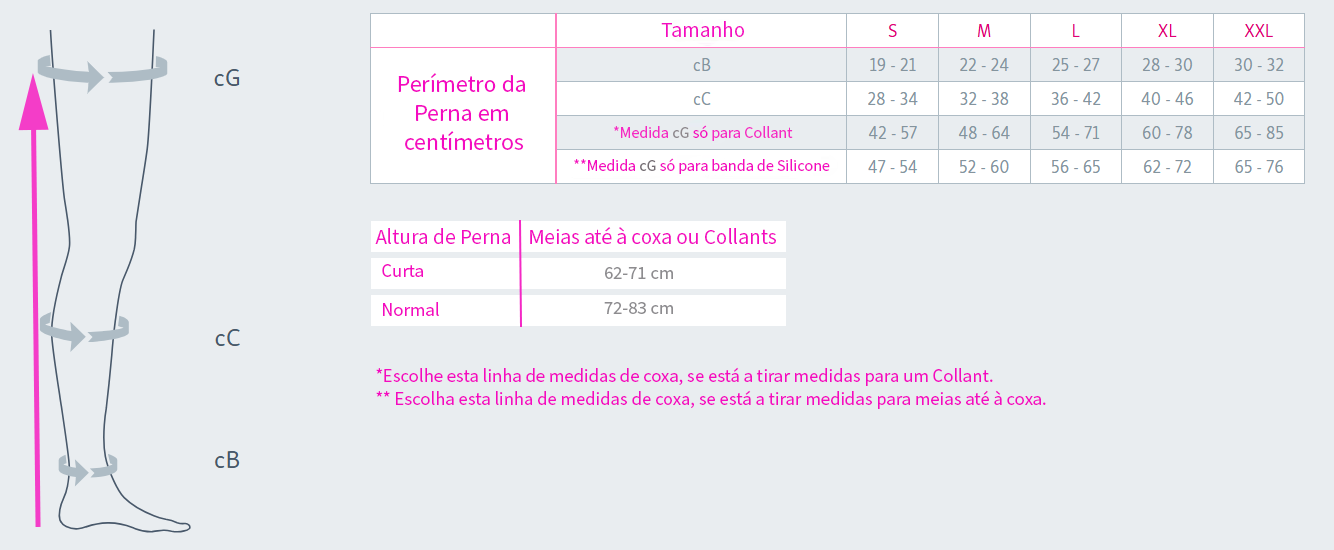perna. Usar um tamanho maior ou menor que o correto só fará o utente piorar,